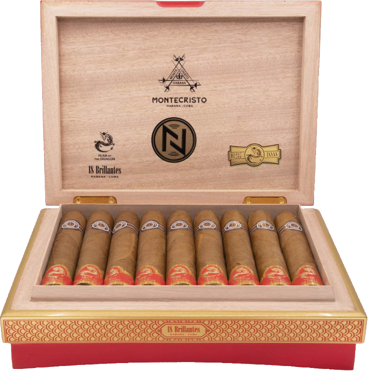 Modell(façon): Venerables.Mått: 21(53)x128mm.Montecristo firar Drakens år med en ny Cigarr. Vid köp av 18st. kommer de in den påkostade Lådan på bilden.